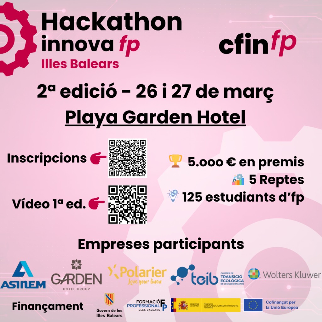 CFINFP (Centre de Formació, Innovació i Desenvolupament de la Formació Professional) està preparant una nova edició del Hackathon InnovaFP, un esdeveniment d’innovació educativa que tindrà lloc els dies 26 i 27 de març de 2026 al Hotel Playa Garden.