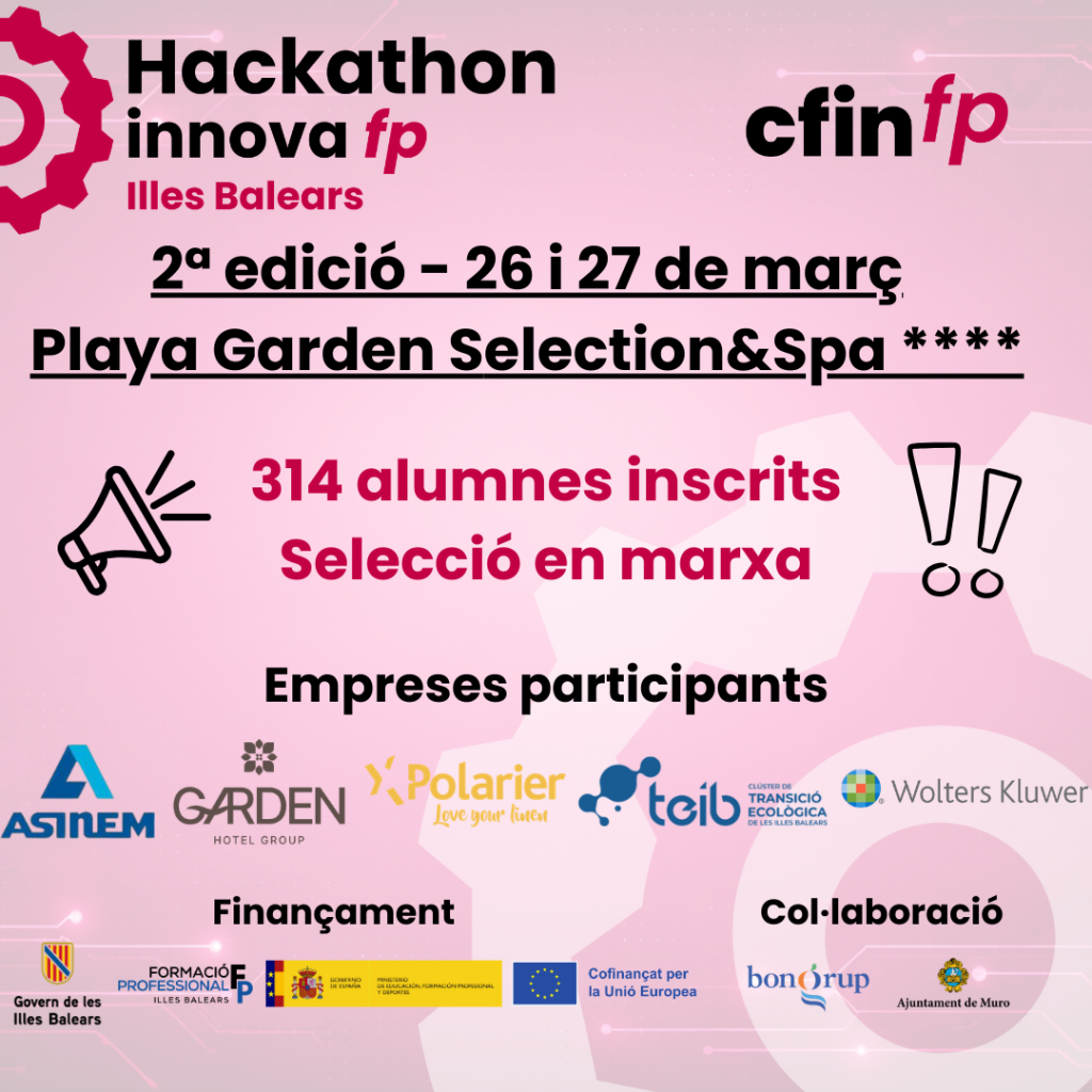 CFINFP (Centre de Formació, Innovació i Desenvolupament de la Formació Professional) està preparant una nova edició del Hackathon InnovaFP, un esdeveniment d’innovació educativa que tindrà lloc els dies 26 i 27 de març de 2026 al Playa Garden Selection Hotel & Spa ****.